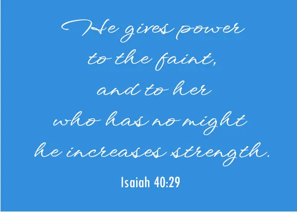 “He gives power to the faint, and to her who has no might he increases strength.” Isaiah 40:29 Let go: What is it that drains you of energy, vitality, or optimism? Is it emotional strain? Physical demands? Often, it’s a combination of both. Start over: There will always be circumstances over which we have no…